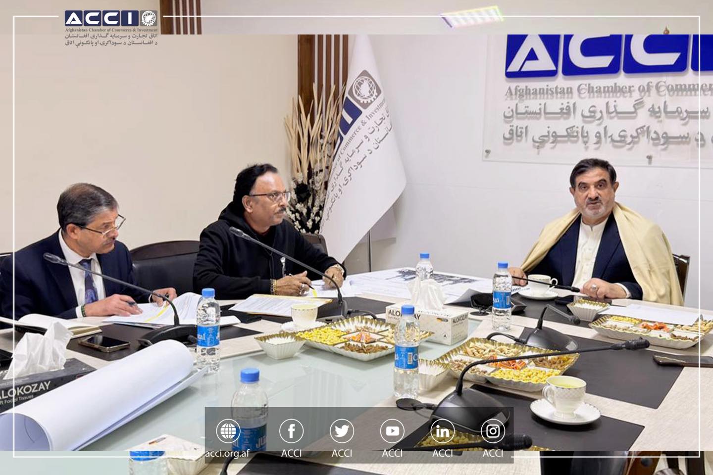 محترم سید کریم هاشمی، رئیس عمومی اتاق تجارت و سرمایهگذاری افغانستان، با جمعی از متخصصین هندی پیرامون طرح ساخت پالایشگاه نفت به ظرفیت ۱۵۰۰۰ بیرل در روز، دیدار و گفتگو نمود.