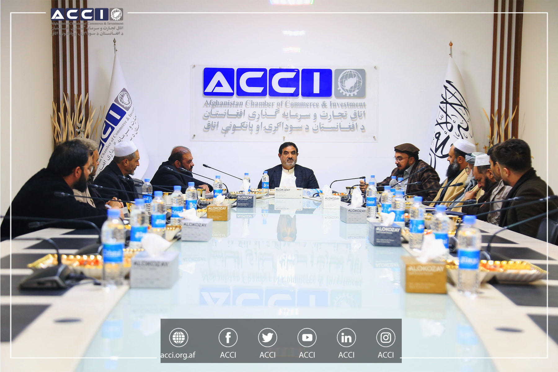 محترم الحاج سید کریم هاشمی رئیس عمومی اتاق تجارت و سرمایه گذاری افغانستان با محترم داکتر فضل الله نیازی رئیس اتحادیه واردکنندگان ادویه و جمعی از اعضای آن، در دفتر ریاست عمومی اتاق ملاقات کرده، مشکلات و پیشنهادات ایشانرا استماع نمود.