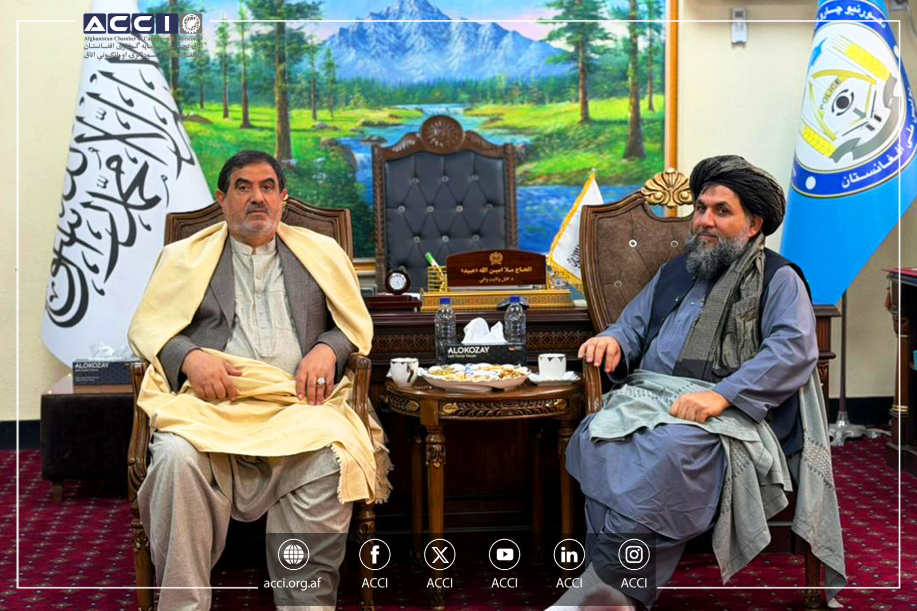 محترم الحاج سید کریم هاشمی رئیس عمومی اتاق تجارت و سرمایه گذاری افغانستان، با رئیس و بزرگان شورای مردم ولایت فاریاب مقیم شهر کابل، در دفتر ریاست عمومی اتاق ملاقات کرده و مشکلات ایشان را استماع نمود.