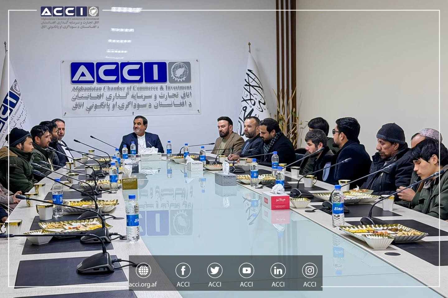 د افغانستان د سوداګرۍ او پانګونې خونې عمومي رئیس، ښاغلي الحاج سید کریم هاشمي د افغانستان د صنایعو او کانونو خونې عمومي رئیس، ښاغلي الحاج احمد نبي‌زاده، د یادې خونې صنعتي مرستیال، الحاج خان محمد وردګ او ملي صنعتکار، الحاج ذبیح‌الله سره د عمومي ریاست په دفتر کې وکتل او د ګډو همکاریو په اړه یې بحث او د نظرونو تبادله وکړه.