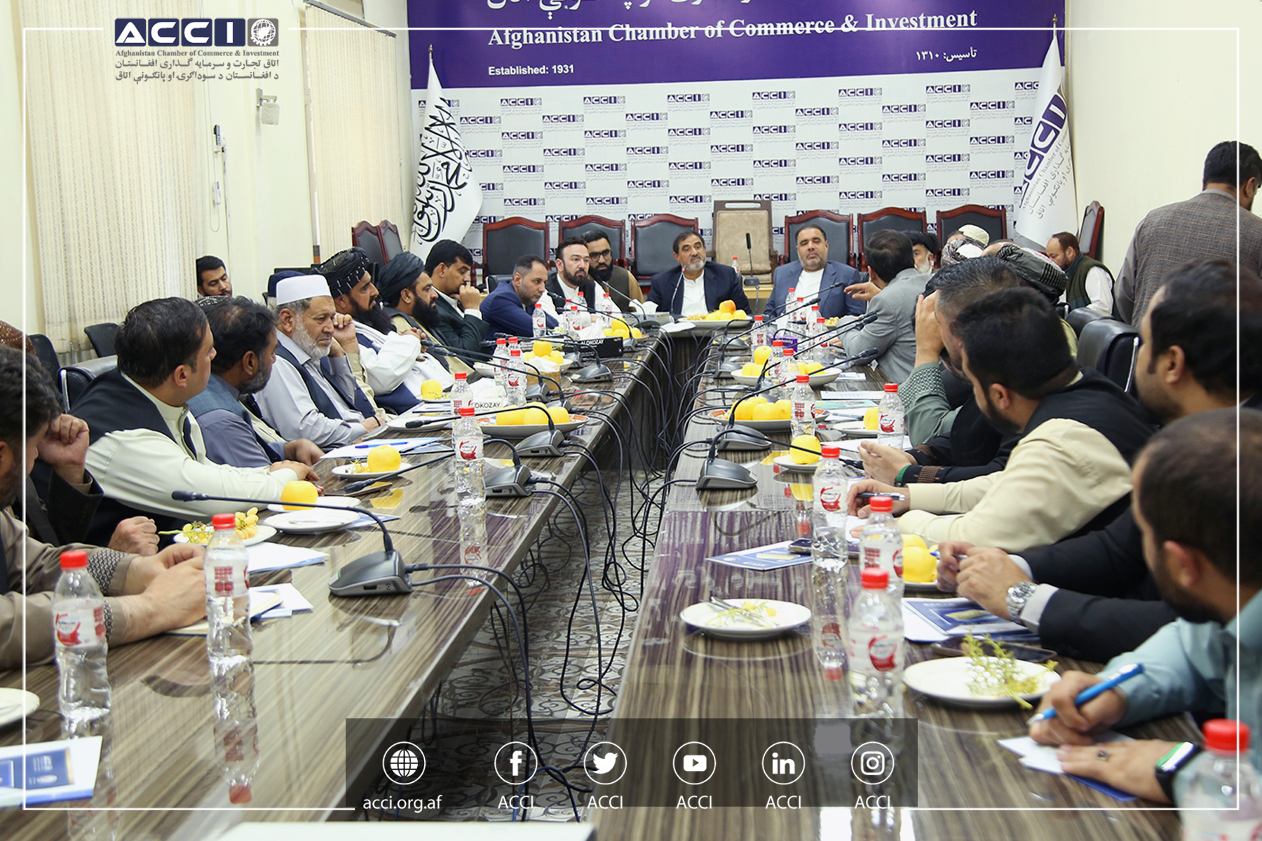 د افغانستان د سوداګرۍ او پانګونې اتاق د عمومي رئیس الحاج سید کریم هاشمي په مشرۍ، د هېواد د میوو د صادروونکو او د اتاق د مشرتابه غونډه د هوايي کارګو له لارې د وچو او تازه میوو د صادراتو د تنظیم او پراختیا په موخه ترسره شوه.
