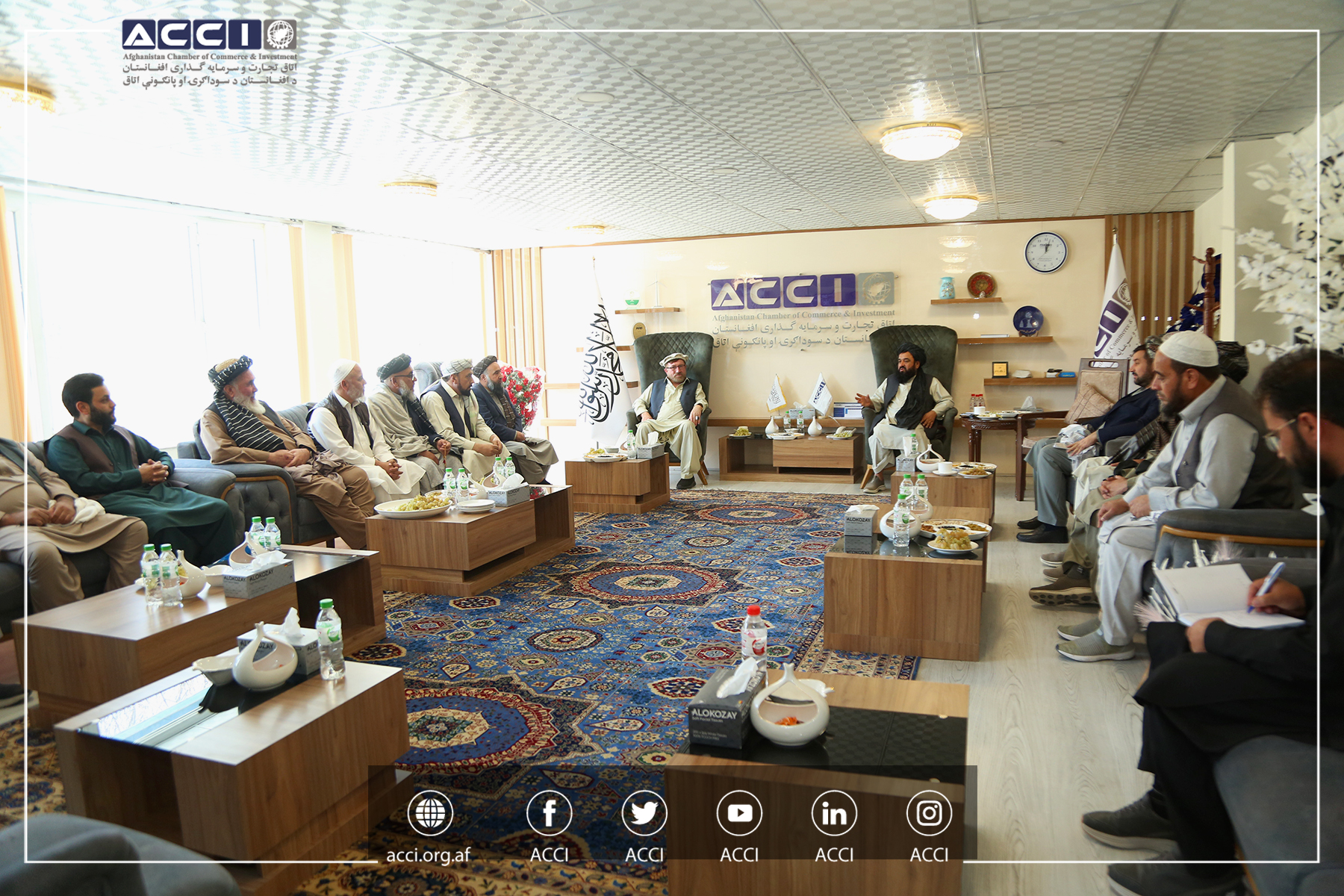 ښاغلي الحاج حبیبالله عمر، د افغانستان د سوداګرۍ او پانګونې خونې د ټولنیزو او فرهنګي چارو مرستیال، د ښاغلیو حاجي عبدالقاسم امرخېل او حاجي یحیی پښتون، د مدیره پلاوي غړو، په حضور کې له محترم سید دهقان، د هالند مېشت افغان سوداګر، او د وچې مېوو له یو شمېر صادرونکو سره په مرکزي دفتر کې وکتل.