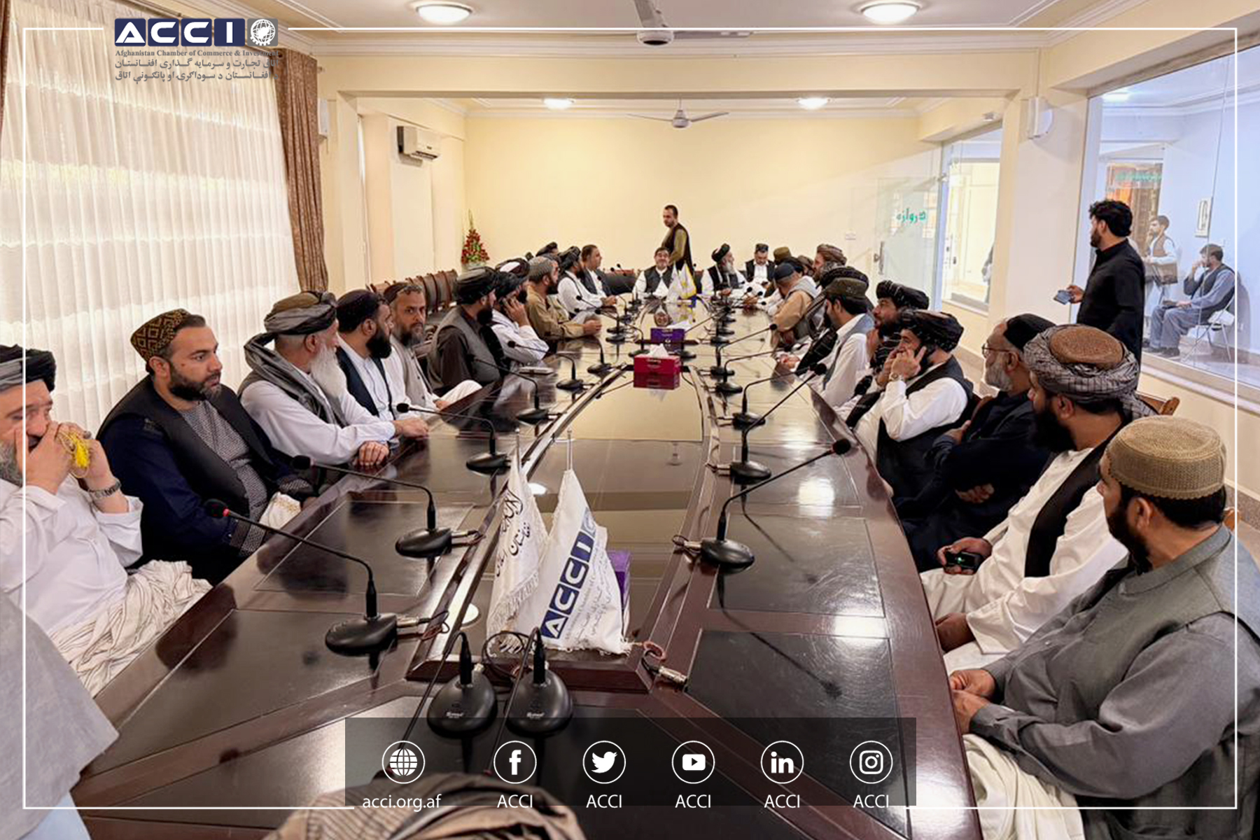 اولین جلسه هیئت مدیره جدید اتاق تجارت و سرمایه گذاری ولایت کندهار، تحت ریاست محترم الحاج سید کریم هاشمی رئیس عمومی اتاق تجارت و سرمایه گذاری افغانستان و الحاج عبدالاحد صدیقی رئیس جدید اتاق تجارت و سرمایه گذاری کندهار و همچنان اشتراک اعضای هیئت مدیره جدید اتاق این ولایت، برگزار شد.