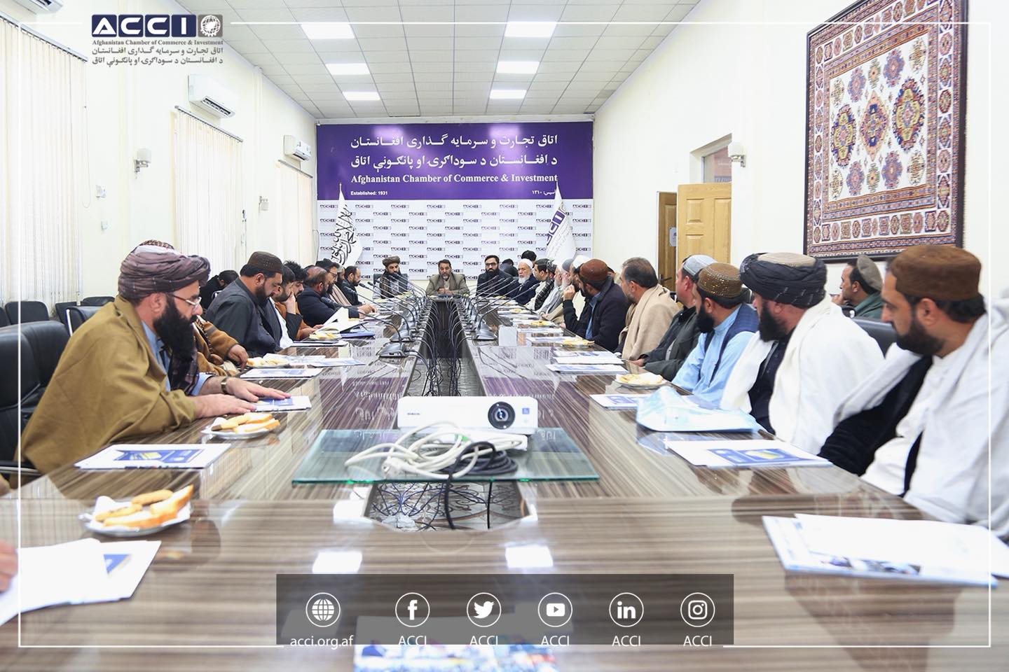 نشست مشترک میان هیئت رهبری اتاق تجارت و سرمایهگذاری افغانستان و جمعی از تاجران کشور با کمیته نظارت از کارکردهای ادارات اقتصادی حکومت، به هدف استماع مشکلات تاجران و بررسی راهکارهای عملی برای حل چالشهای موجود در عرصه تجارت و سرمایهگذاری، در تالار کنفرانس های اتاق برگزار گردید.