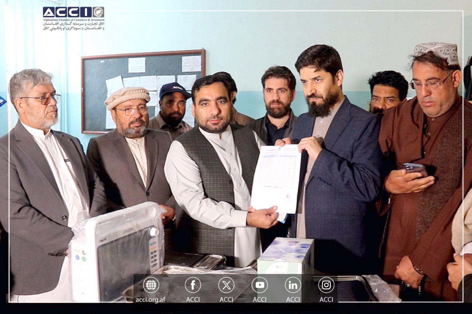 کمک بیش از ۴۰ هزار دالر وسایل طبی از سوی عضو هیئت مدیره اتاق تجارت و سرمایه گذاری افغانستان و رئیس شرکت برادران نورزاد به شفاخانههای ولایتی زرنج و هرات