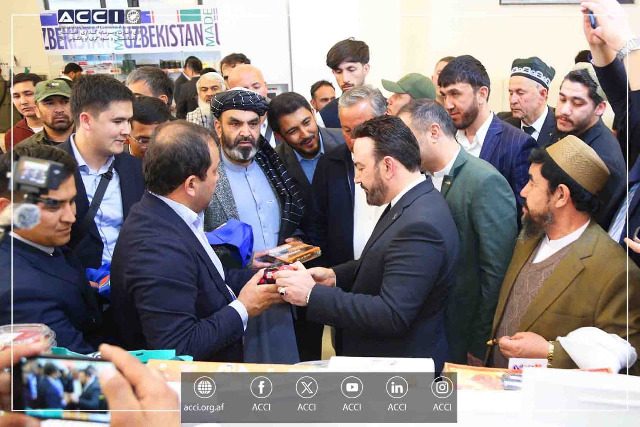 محترم الحاج آرین زلگی عظیمی، معاون سرمایه‌گذاری اتاق تجارت و سرمایه‌گذاری افغانستان، در مراسم افتتاح نمایشگاه محصولات ولایت اندیجان ازبیکستان که در شهر کابل برگزار گردید، اشتراک کرده و از غرفه‌های مختلف این نمایشگاه دیدن نمود.