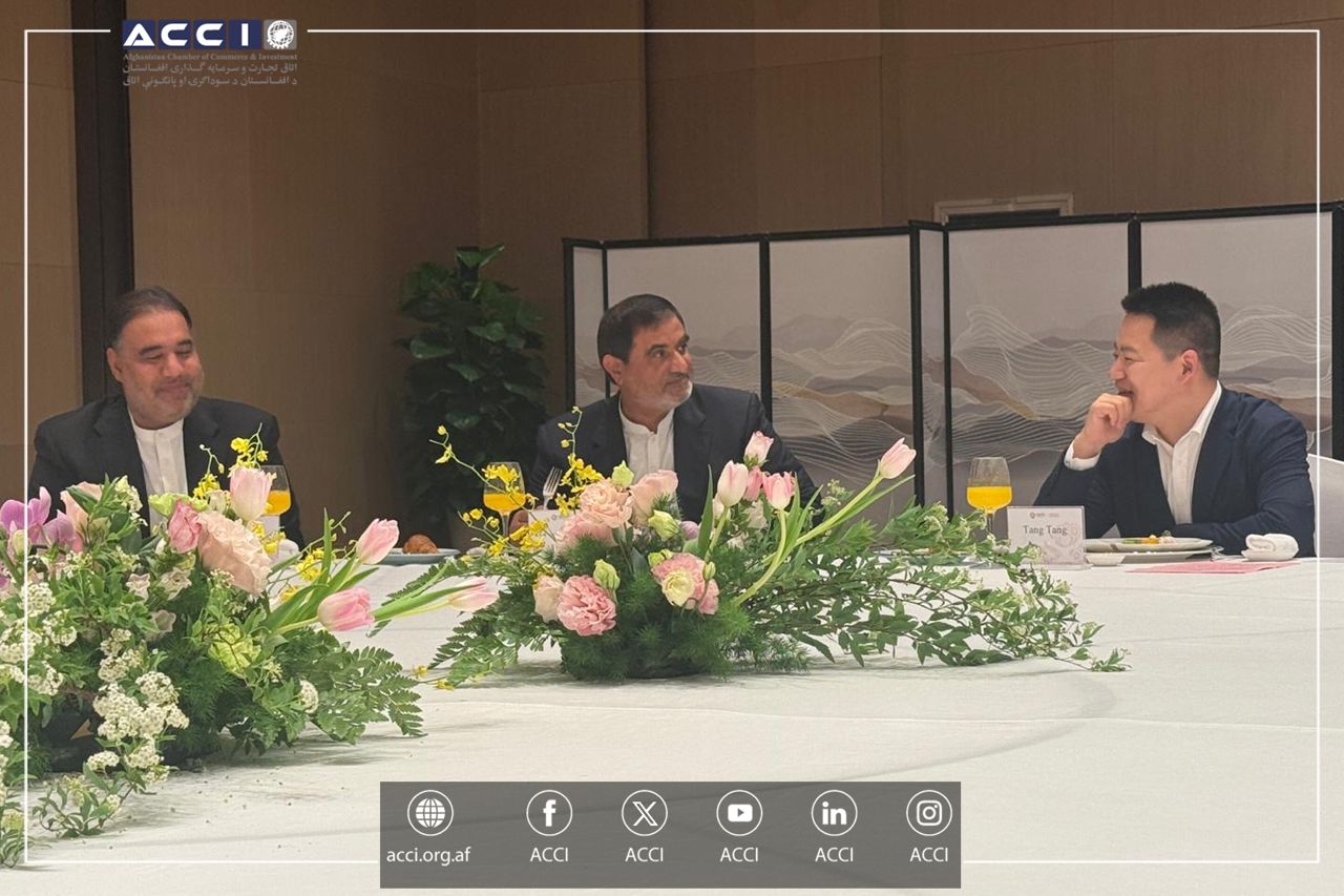 محترم الحاج سید کریم هاشمی رئیس عمومی اتاق تجارت و سرمایه‌گذاری افغانستان، با محترم تنگ تنگ، معاون والی ولایت ایووی چین، دیدار نموده و مشکلات و چالشهای عمده تاجران افغان مقیم چین را با وی درمیان گذاشت.