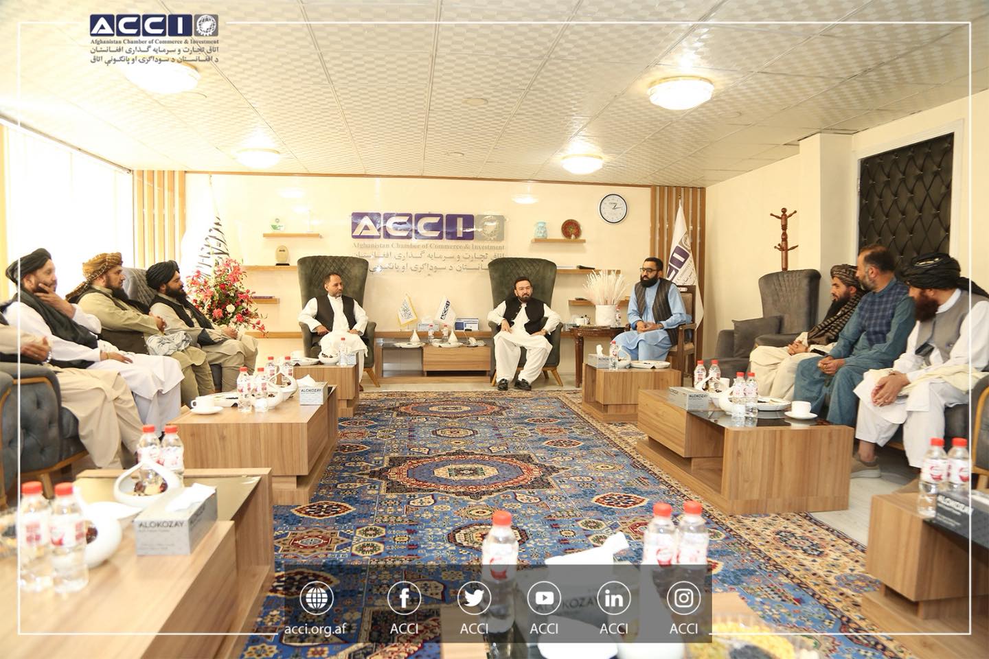 محترم خیرالدین مایل احمدی معاون تجارتی اتاق تجارت و سرمایه گذاری افغانستان، محترم شیرین آغا سخی رئیس مالی هیات مدیره اتاق و محترم محمد انورعارفی معاون پالیسی و تخنیکی و همچنان سرپرست ریاست هیات عامل اتاق، با تاجران واردکننده شیرخشک در دفتر مرکزی اتاق ملاقات کرده و پیرامون افزایش تعرفه گمرکی بحث و تبادل نظر نمودند.