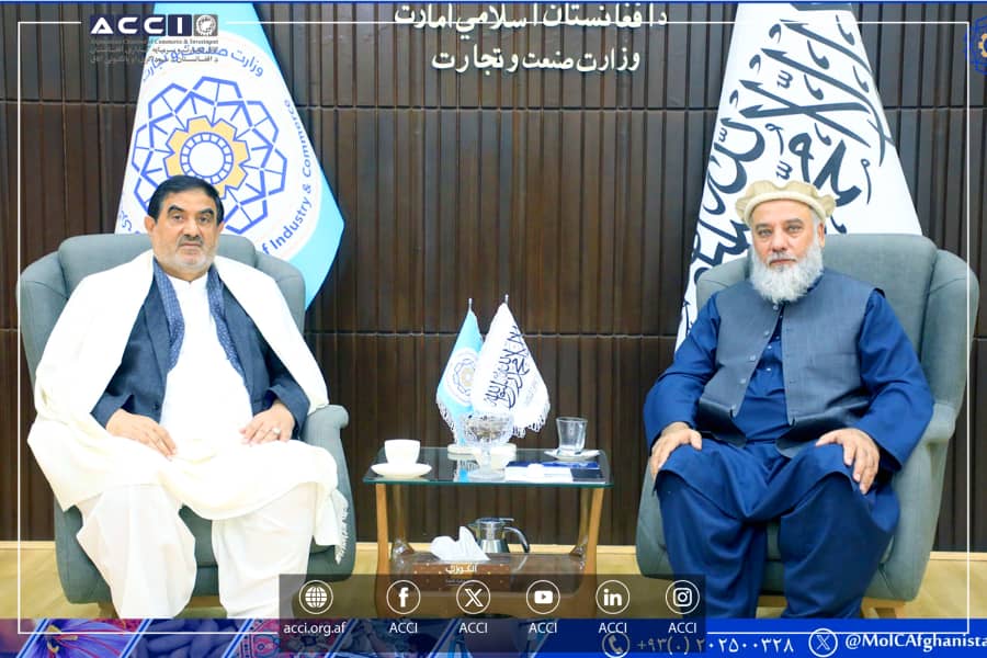 محترم الحاج سید کریم هاشمی رئیس عمومی اتاق تجارت و سرمایه گذاری افغانستان، با محترم مولوی امین الله عبید والی ولایت کابل، ملاقات کرد.