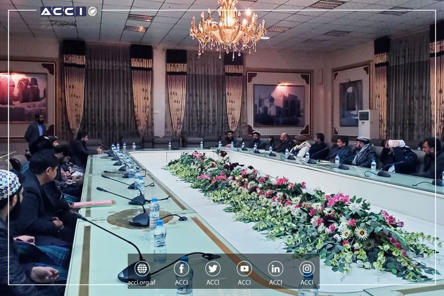 د دافغانستان د سوداګرۍ او پانګونې اتاق د مشرتابه پلاوي مزارشريف ته د خپل سفر په پيل کې له يو شمېر سوداګرو، پانګوالو، صنعتکارانو، معدنکارانو، د چرګانو د اتحاديې له استازو، د بلخ ولايت د ترانسپورت اتحاديې له استازو او د بلخ، فاریاب، جوزجان او اندخوی ولسوالیو اتاقونو له رئیسانو سره لیدنه وکړه.