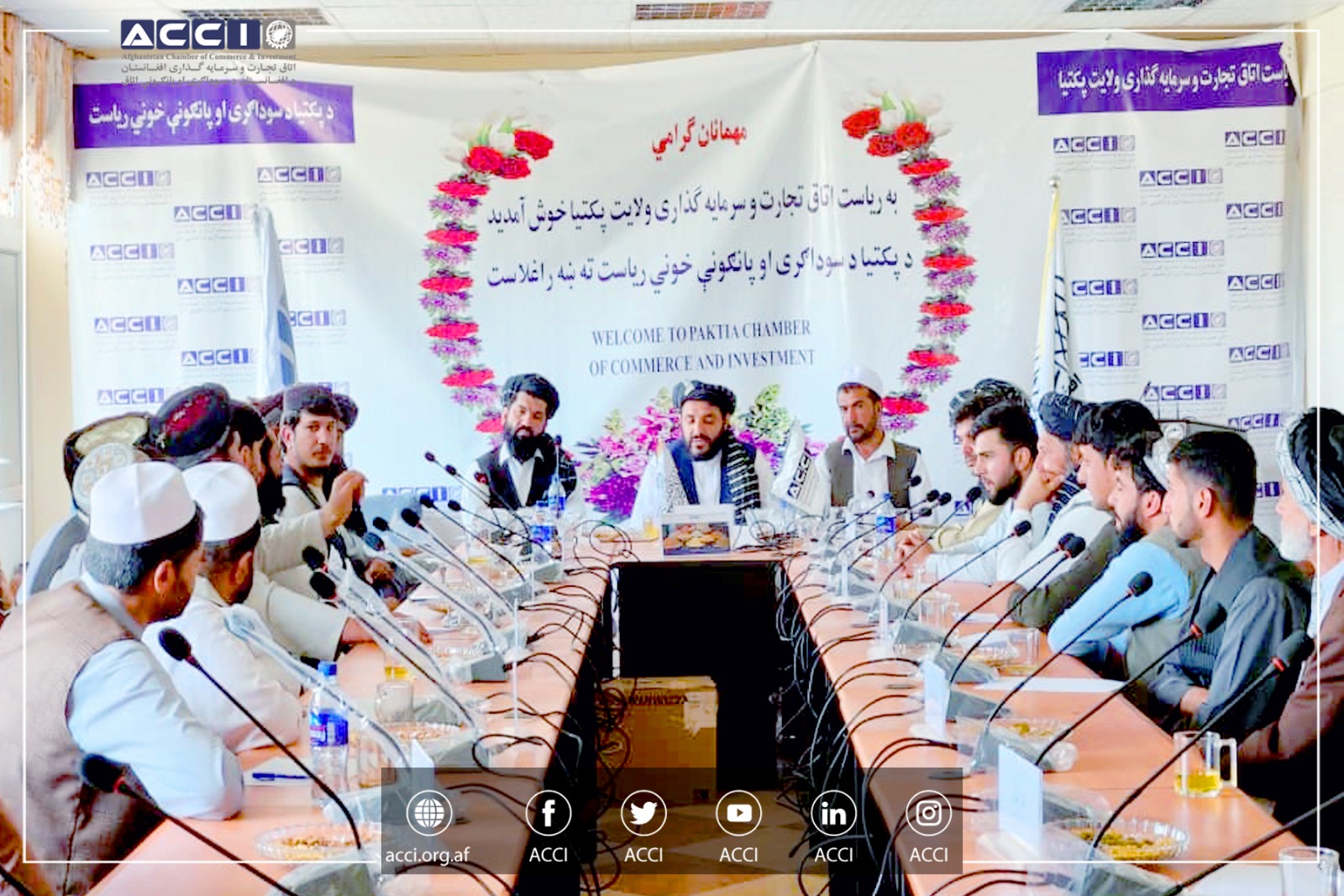 د افغانستان د سوداګرۍ او پانګونې اتاق مدیره پلاوي لومړي مرستیال ښاغلي محمد یونس مهمند سویلي ولایتونو ته د خپل کاري سفر په ترڅ کې، په داسی حال کې چې، د اتاق ستر سلاکار ښاغلي سردار ولي پشتون او د صرافانو اتحاديې ریاست سرپرست ښاغلي بهرام خان يې ملتیا کوله، د پکتیا ولایتي اتاق له مدیره پلاوي، د غالیو، ودانیو، درملو او صنعت اتحادیو غړو، د یاد ولایت سوداګرو او پانګوالو سره لیدنه ترسره او د ټرانزیټ او معیاري لابراتوار نه شتون او یو شمیر نورو مسایلو په اړه يې خبرې اترې وکړې.