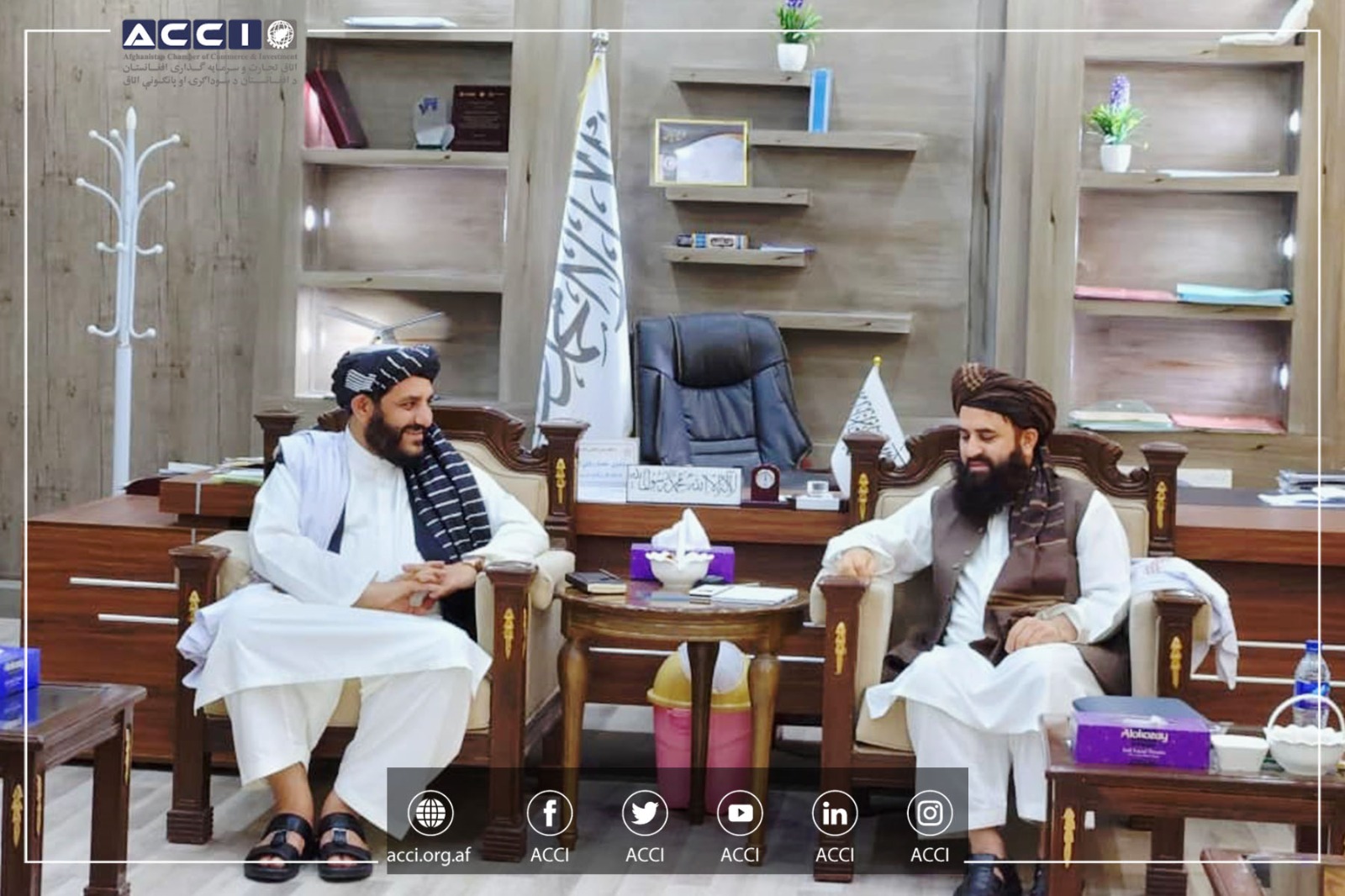 د افغانستان د سوداګرۍ او پانګونې اتاق مدیره پلاوي لومړي مرستیال د ننګرهار ولایت مقام کفیل سره لیدنه ترسره کړه