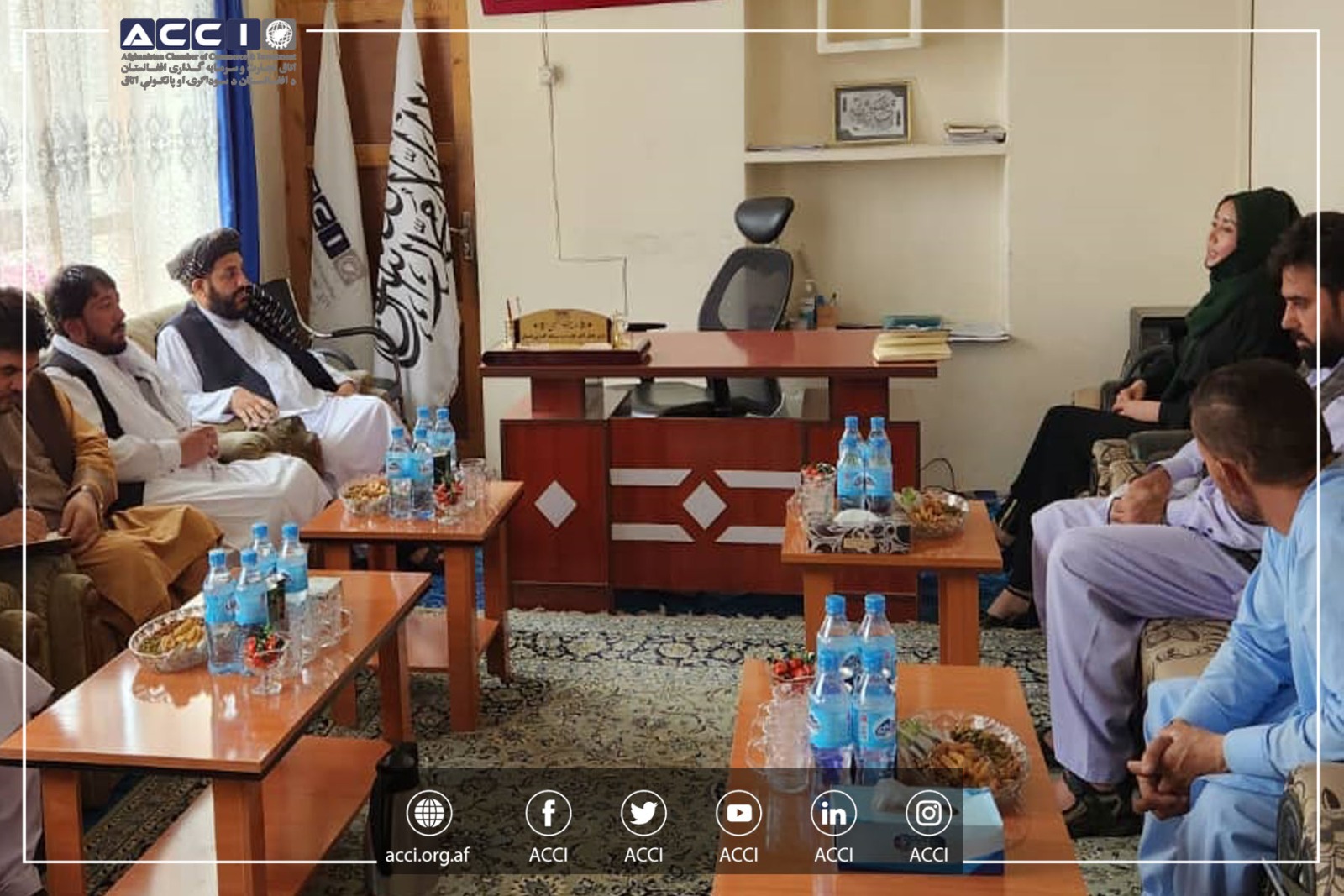 د افغانستان د سوداګرۍ او پانګونې اتاق مدیره پلاوي لومړي مرستیال ښاغلي محمد یونس مهمند بامیان ولایت ته د خپل کاري سفر په ترڅ کې، په داسی حال کې چې د اتاق عامل پلاوي د صادراتو پراختیا او اداري څانګو مسؤلینو يې ملتیا کوله، د بامیانو ولایت د سوداګرۍ او پانګونې اتاق څخه لیدنه ترسره او د سوداګرۍ او پانګونې، کرنې، مالدارۍ او توریزم برخه کې يې د شته ستونزو او ننګونو په اړه خبرې اترې وکړې.