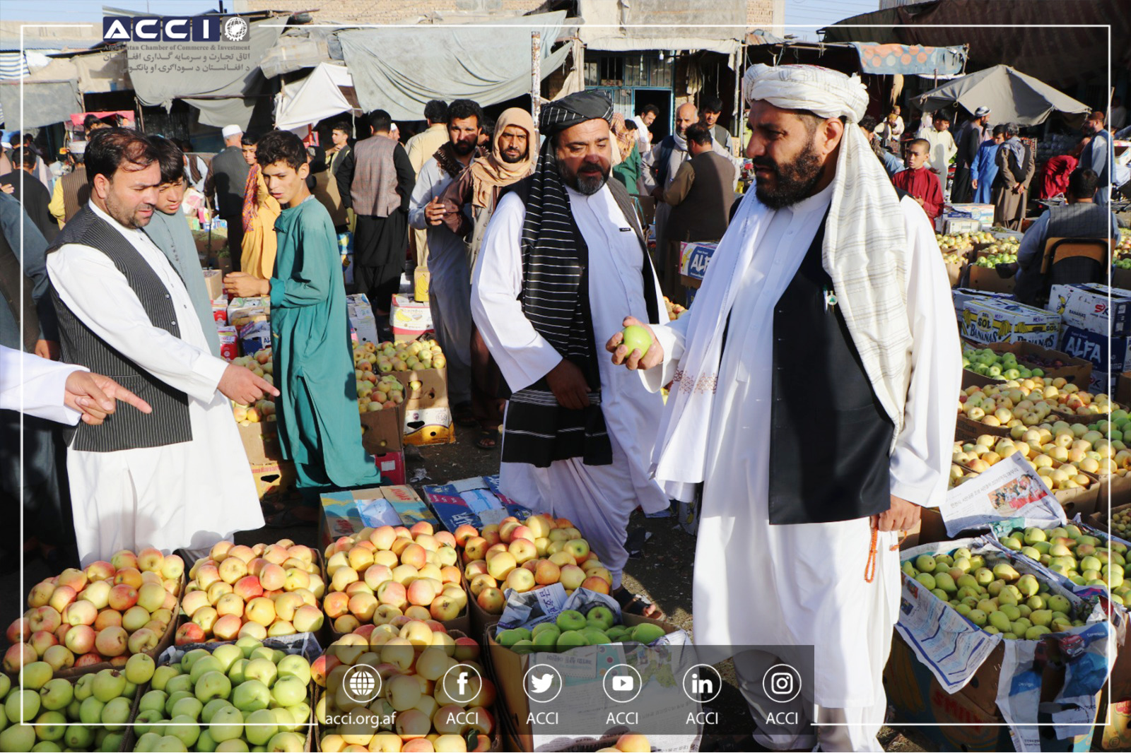 د افغانستان د سوداګرۍ او پانګونې اتاق د مدیره پلاوي لومړي مرستیال ښاغلي محمد یونس مهمند ، د هرات ولایت د سوداګرۍ او پانګونې اتاق د مشرتابه پلاوي په شتون کې د هرات د تازه میوې او سبزیجاتو له مارکیټ او د هرات ولایت د تازه میوو او سبزیجاتو له سوداګرو څخه لیدنه ترسره او د دوی ستونزې يې واوریدې.