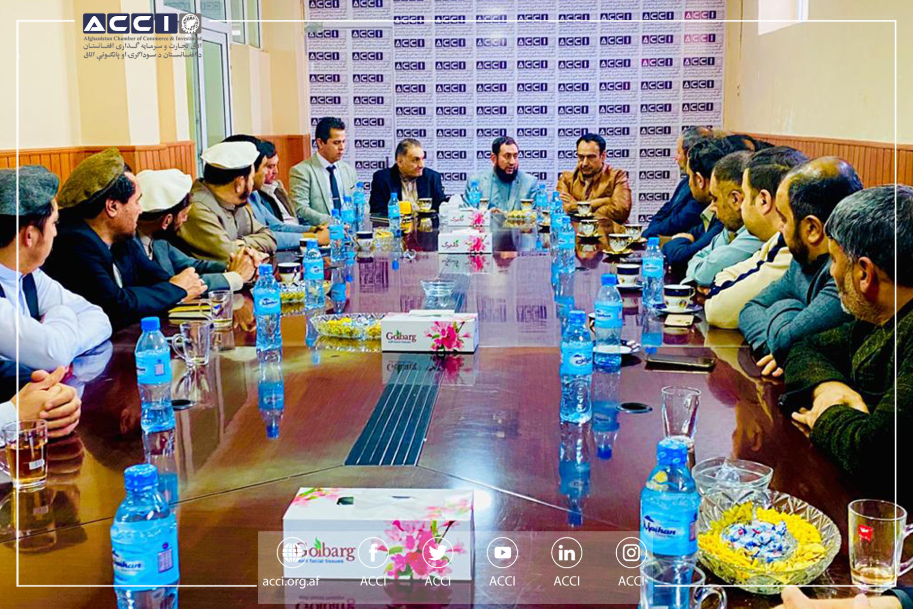 د افغانستان د سوداګرۍ او پانګونې اتاق سوداګریز مرستیال ښاغلي خیرالدین مایل احمدي د افغانستان د درملو د سراسري اتحاديې له عمومي رئیس ښاغلي اسدالله کاکړ او د درملو له تولیدوونکو او واردوونکو سره د بلخ په ولایتي اتاق کې د لیدنې په ترڅ کې د کورنیو تولیداتو په لوړتیا او شتو ستونزو خبرې اترې وکړی.په دی ناسته کې ښاغلي احمدي ښاغلی کاکړ او نورو سوداګرو ته د ښه راغلاست ویلو ترڅنک، هغوی د اتاق غړیتوب اخستلو ته وهڅول او د شتو ستونزو د له منځه وړلو په برخه کې د اتاق د هر ډول همکارۍ ژمنه وکړه.د افغانستان د سوداګرۍ او پانګونې اتاق سوداګریز مرستیال ښاغلي خیرالدین مایل احمدي د افغانستان د درملو د سراسري اتحاديې له ټاکنو څخه چې د بلخ په ولایت کې ترسره شوې، څارنه وکړه.