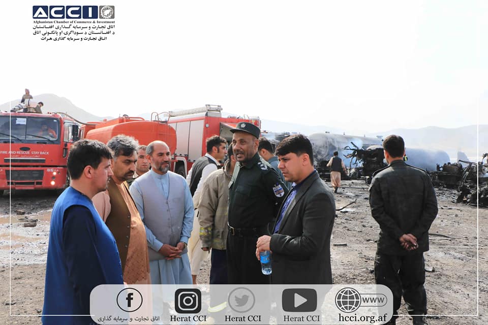 د هرات د سوداګرۍ او پانګونې اتاق د مشرتابه غړو، په داسې حال کې چې پیښې ته ورغلي او د اور لګیدنې د لاملونو په اړه یې څیړنه کوله، د زیان کچه یې هم له نږدې و څارله.
