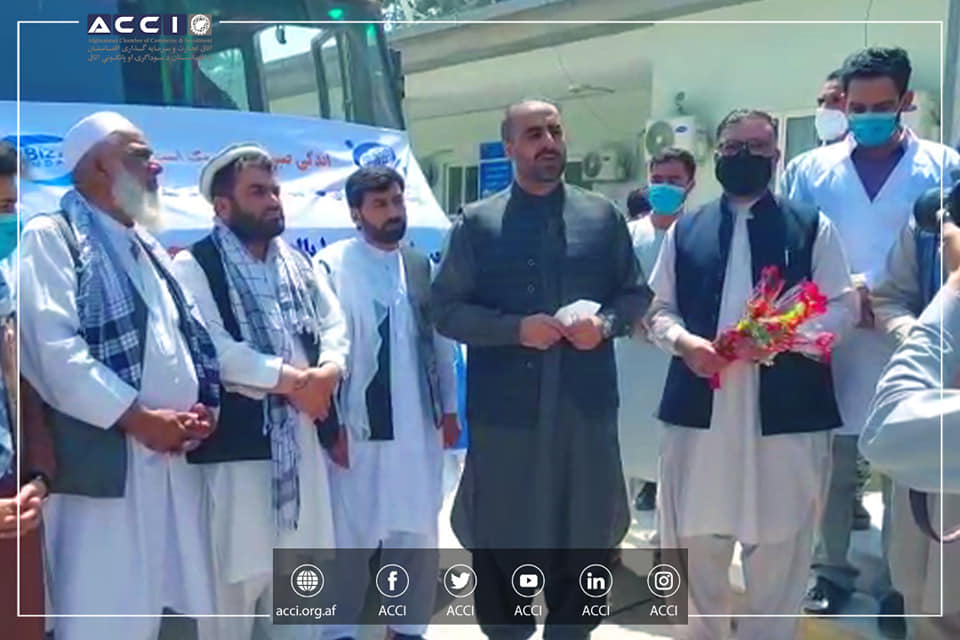 د افغانستان د سوداګرۍ او پانګونې اتاق مدیره پلاوي سوداګریز مرستیال او د حاجي ګل آغا پرواني بنسټ رئیس ښاغلي خیرالدین مایل احمدي او د نبي زاده خیریه بنسټ رئیس ښاغلي کمال نبي زاده د هېواد کویډ -۱۹ وایروس ځپلو سره د خواخوږۍ په تړاو د ازبیکستان څخه د اکسیجن پیرودل شوو ډبو له جملې څخه ۱۰۰ د کندز ولایت کویډ – ۱۹ روغتونونو ته په وړیا ډول وویشلې ترڅو ګران هېوادوال تری په وړیا ډول ګټه پورته کړي.د کندز ولایت ښاغلي والي او د کندز عامې روغتیا ښاغلي رئیس د ښاغلي احمدي او ښاغلي نبي زاده څخه ددی پروخت مرستې په تړاو مننه وکړه او دغه مرسته يې په داسې حال کې چې، په هېواد کې د کویډ – ۱۹ ناروغان د اکسیجن کمښت سره مخ دي، اړینه او ارزښتمنه وبلله.